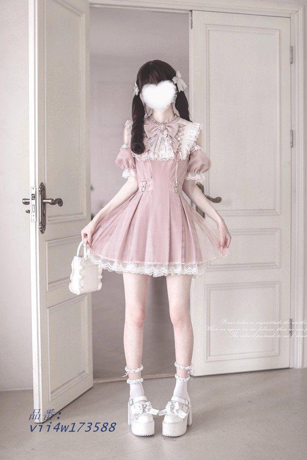 量産型 ワンピース チェック柄 地雷系 夏 セットアップ M レース S L ピンク 半袖 レディース 女子 リボンお出かけ 通勤