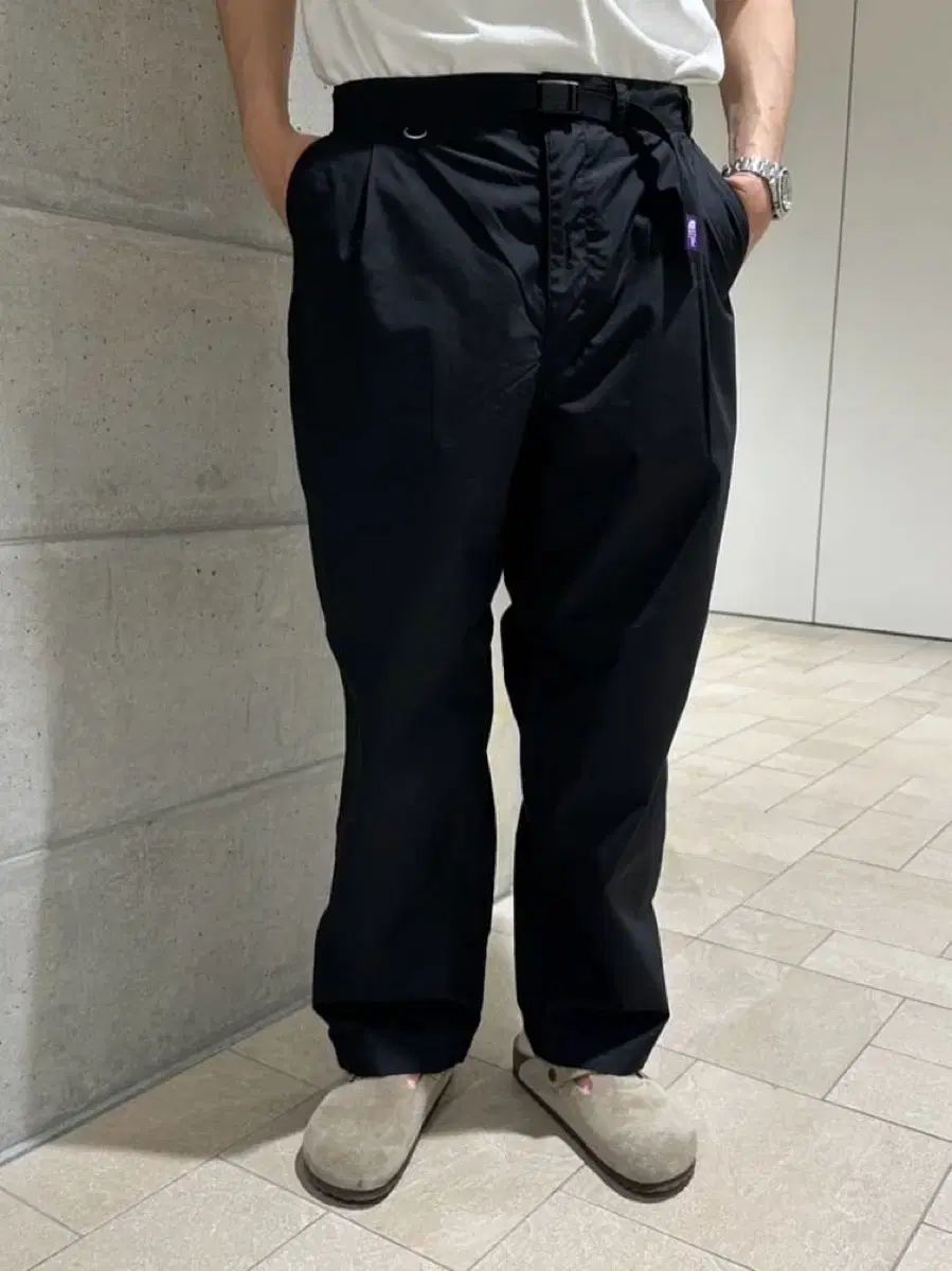 25ssシーズン商品で、36サイズです。36ですが、若干小さく作られており、34~35サイズ体感の方にワイドフィットとして良いサイズかと思います。65/35 ポリ・コットン生地で、シャカシャカ素材の日常生活防水生地のパンツです。自宅で試着のみの新品で、濃いネイビーカラーです。ウエスト44、丈104、裾24.5、太もも37。