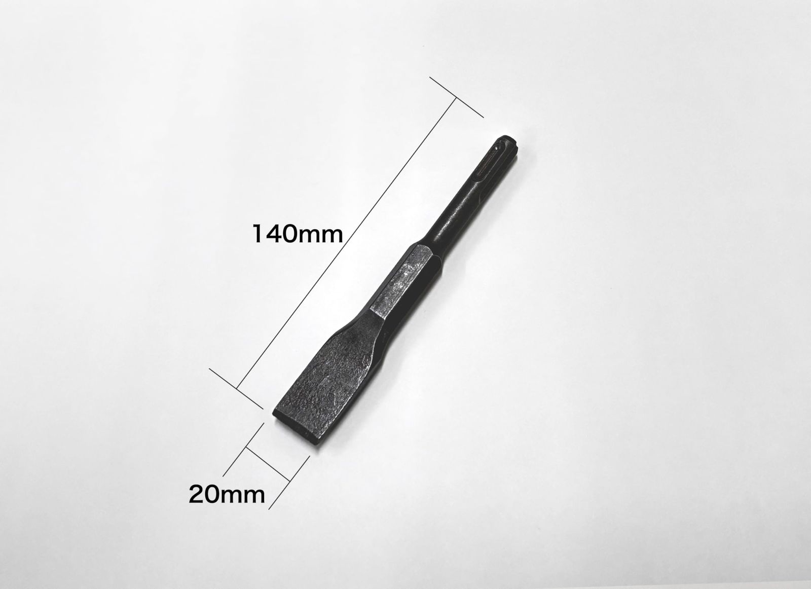 スケーリングチゼル ST-20 長さ140mm x 巾20mm お持ちの工具に取り付け後、カバーや手袋等を装着し安全確認後に使用してください。 各種タイル、コンクリート等のケレン・斫り等に適しております。 SDSタイプの電動工具に取り付け可能です。