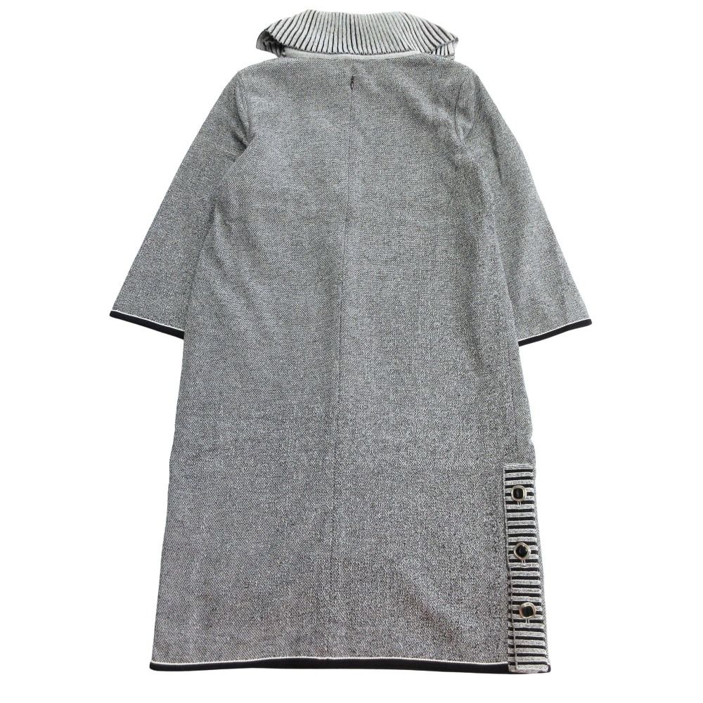 【商品名】jun ashida ジュンアシダ タートルネック コットン ニット ワンピース ドレス チュニック 七分袖 L ブラック×ホワイト