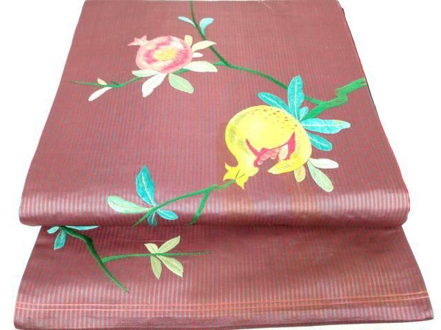 平和屋着物 アンティーク 大正ロマン 京袋帯 駒刺繍 総刺繍 成物 ざくろ 金糸 正絹 az