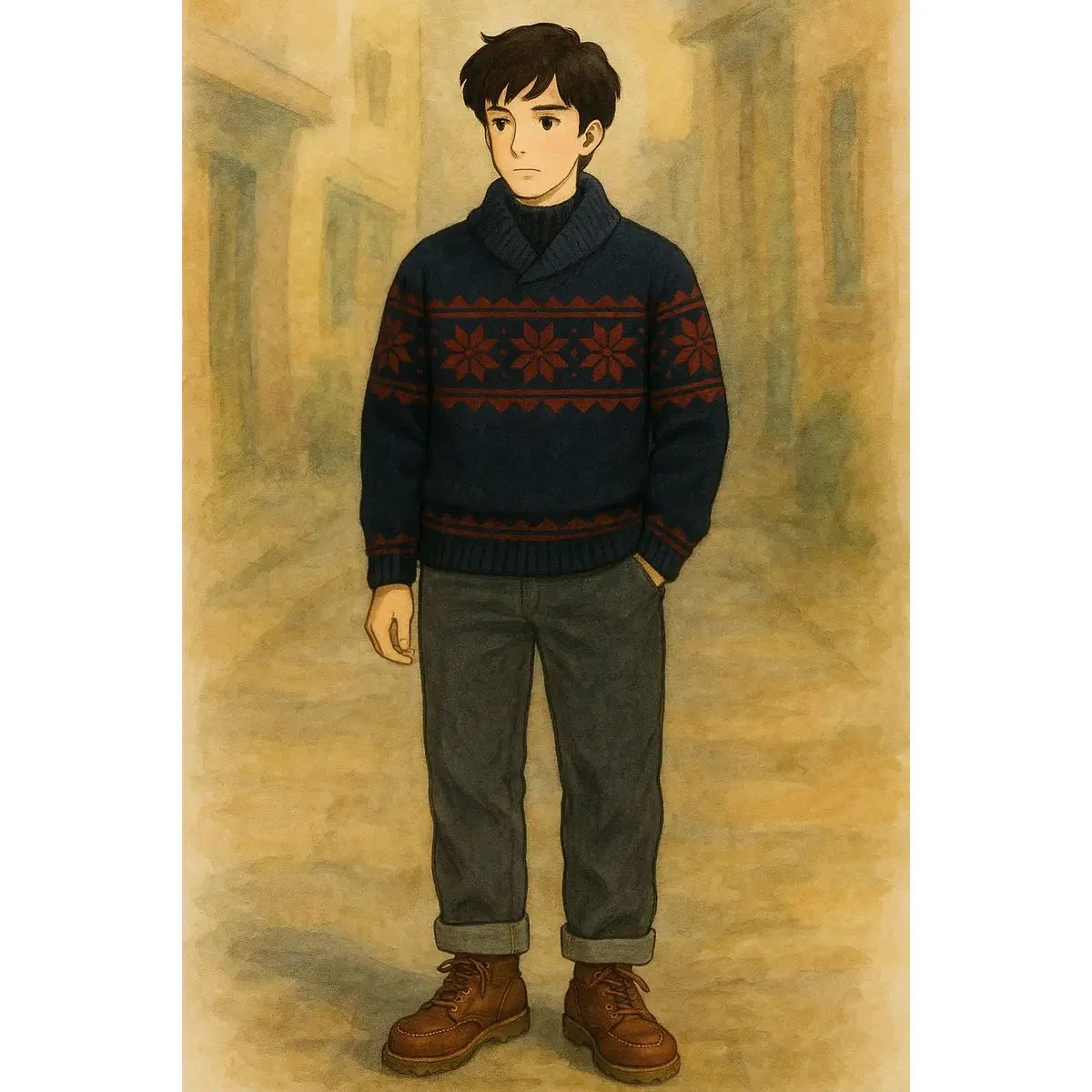 103 J.PRESS Jプレス ウール ノルディック ショールカラー ニット
