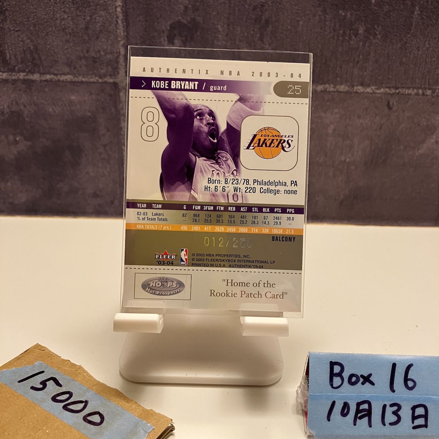 2003 Fleer Authentix Kobe Bryant 012/250 Los Angeles Lakers Arena Access Balcony Parallel Game 1 vs Mavericks