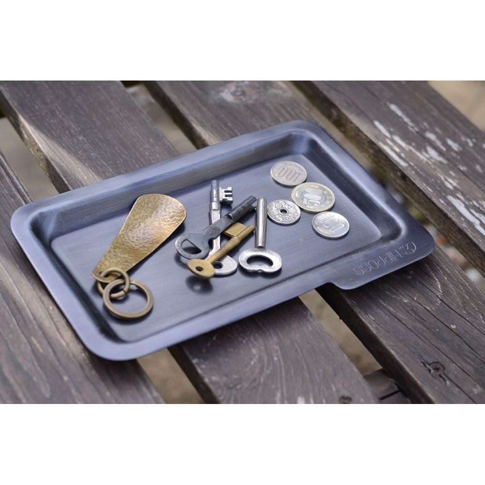 鉄の素材感を活かした無骨な雰囲気のトレーステーショナリートレーやマネートレーとして