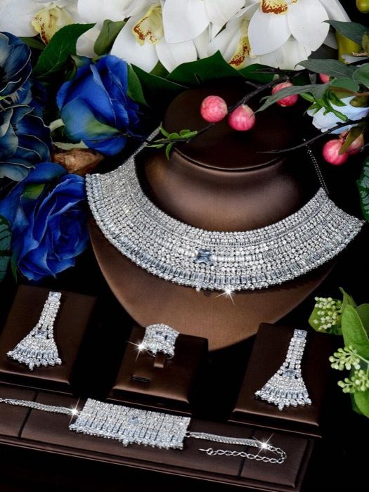 ジュエリー レディース セット キュービックジルコニア扇型装飾ジュエリーセット 式典やセレモニーでの女性の装飾に適しています