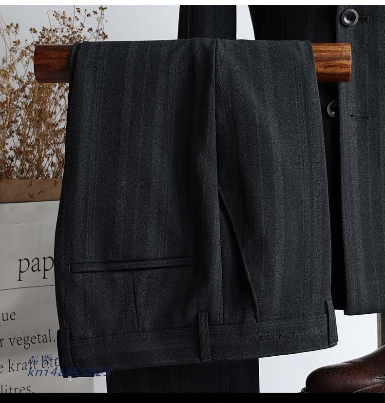 メンズ スーツ 2つボタン ストライプ ビジネススーツ SUIT 細身 スリムスーツ フォーマルスーツ 紳士服 二次会 結婚式 卒業式 入学式 面接 通勤着心地良い 礼服 結婚式 オールシーズン対応 パーティー カジュアルスーツ おしゃれ 春 秋 上下セット グレー