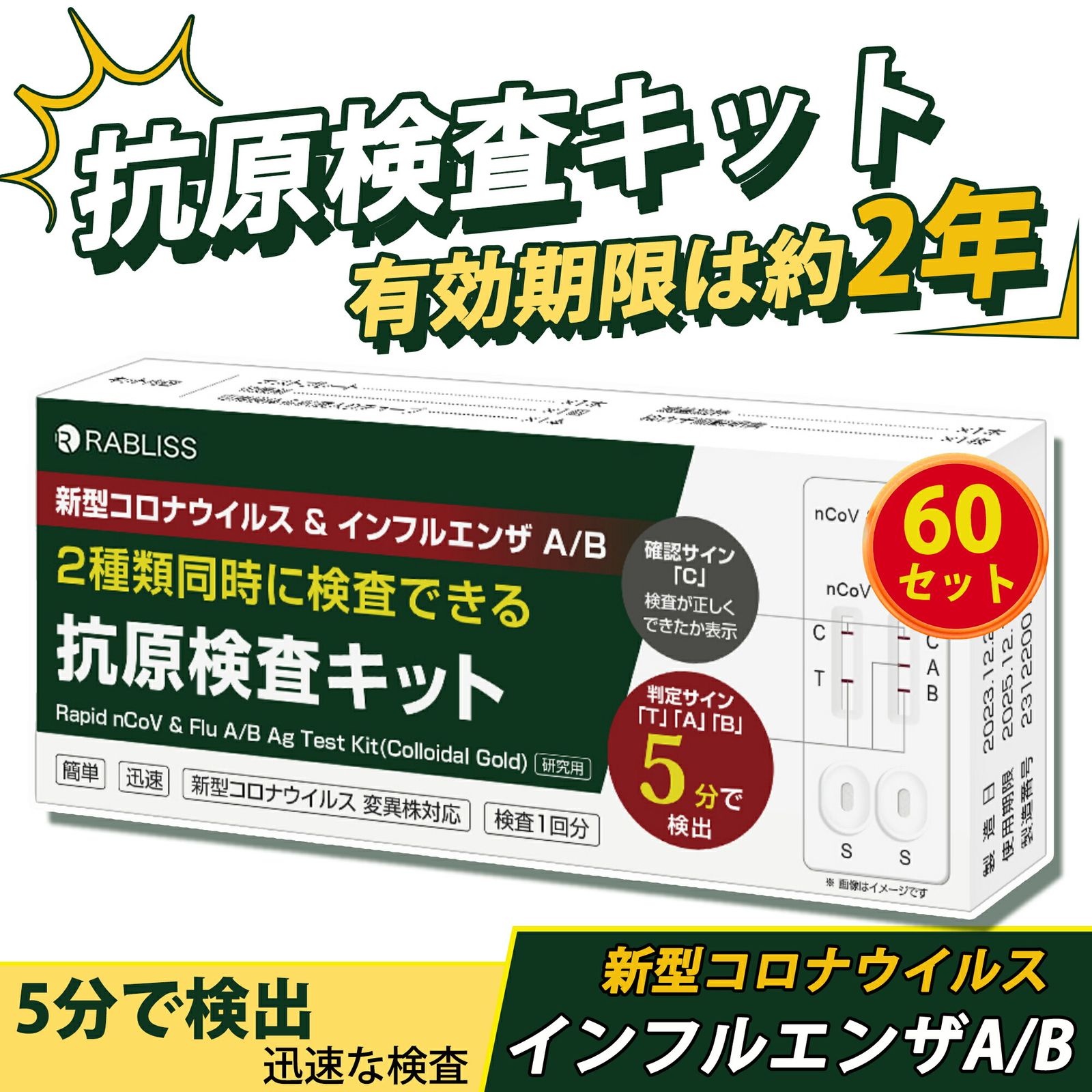 Sale期限 488円OFF 60点セット 2025新型インフルエンザ対応 新型コロナウイルス 抗原検査キット 5分判定 コロナ インフル 同時 検査 インフルエンザ A B 自宅対策 コロナ検査キット