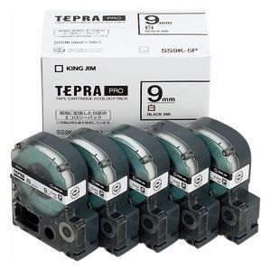 「キングジム テプラPROテープ エコパック 5個入 SS9K-5P(白/黒文字 9mm幅)」は、9mm幅テプラテープのエコパックです。包装材を減らし、廃棄物を削減しました。5個入り。白色ラベルに黒文字。 原産国 日本
