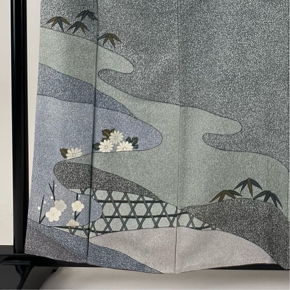 訪問着 身丈160 cm 裄丈63 S 袷 大久保玄才 落款 菊 笹 金彩 灰白 正絹 秀品