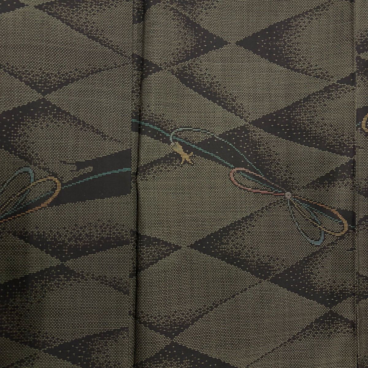 大島紬 身丈151.5 cm 裄丈63 S 袷 純泥染 証紙 組紐 菱 茶緑色 正絹