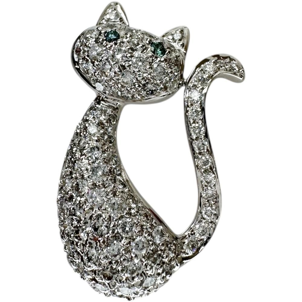 キャットモチーフ ブローチ兼用 トリートメントダイヤモンド 計0.02 ct ダイヤモンド 計0.76 ペンダントトップ K 18 WGホワイトゴールド 18金 3.8 g レディース NN