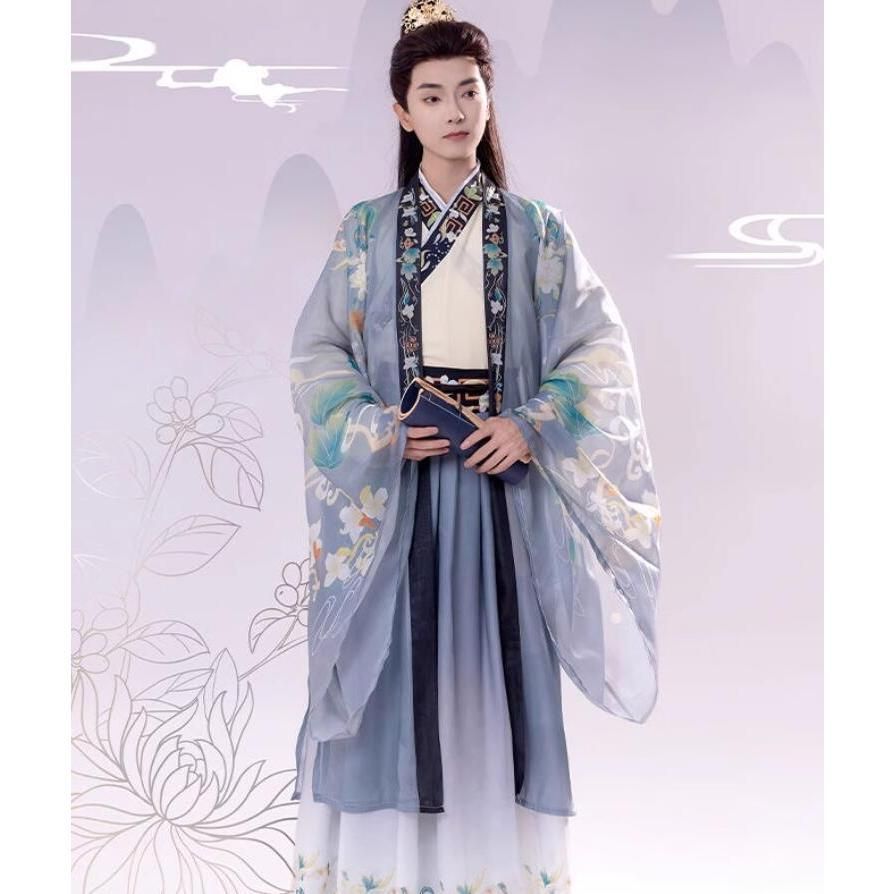 職人製作 漢服 大人 男女兼用 中華コスプレ衣裳 振袖の羽織付き 華やか3点セット メンズ レディース 爽やか 飄逸 グラデーション チャイナ服 花柄プ