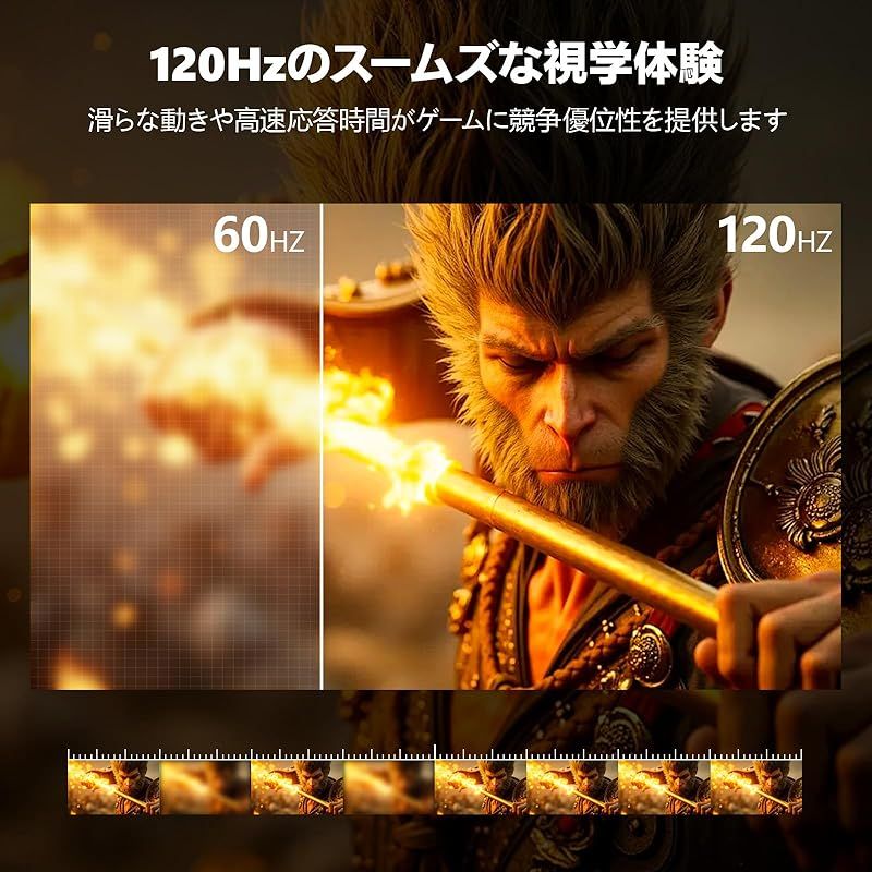 【120Hzリフレッシュレート】超高リフレッシュレートで入力遅延を低減、高画質映像を実現します。FreeSync技術と超高リフレッシュレートにより、入力遅延を低減し、作業やゲームの画面品質を向上させます。動きの鮮明さと滑らかな映像を実現します。