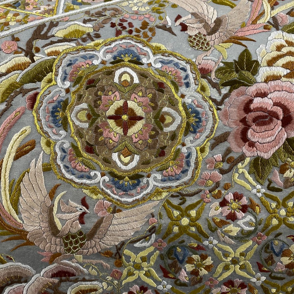 袋帯 秀品 華文 鳳凰 刺繍 金糸 灰色 お太鼓柄 正絹