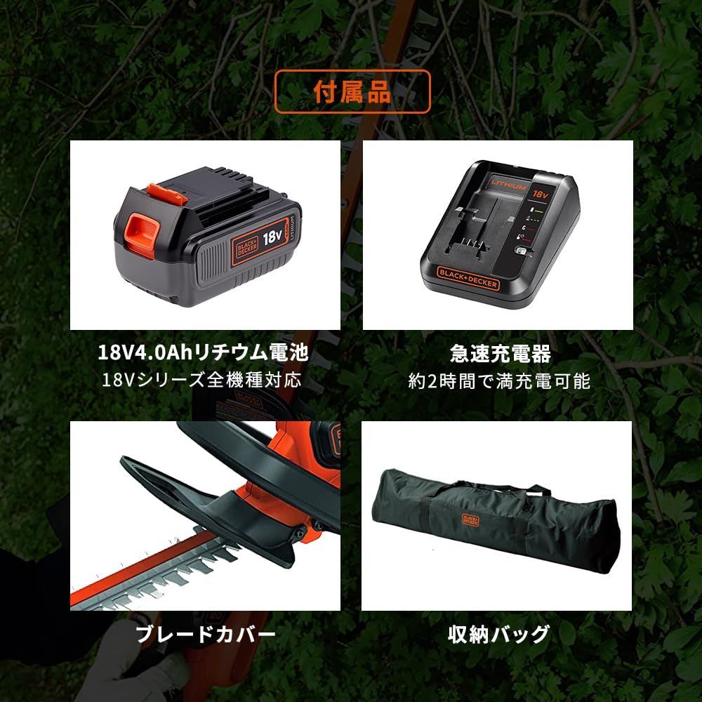 ブラックアンドデッカー コードレス ヘッジトリマー ガーデン ガーデニング 農業 園芸用機器 パワーモード 安全二重スイッチ 18V 4.0Ah バッテリー セット (収納バッグ付き) GTC18504PC