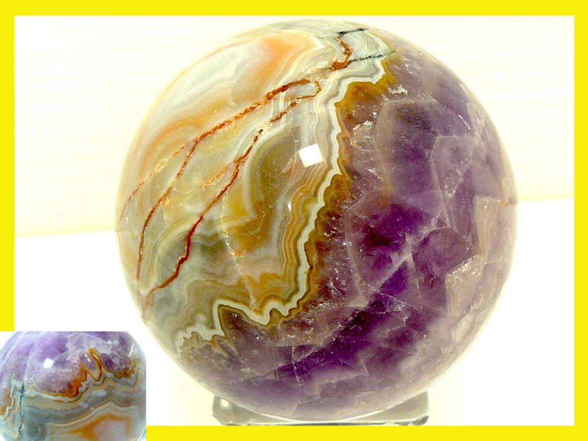 メキシカン クレイジー アゲート スフィア 丸玉 虹 アートスティック パープル濃淡 アメジスト チャクラ 癒し ヒーリング クリスタル 魔除け 天然石 レア_U2 になります。画像のものが全てです。(撮影に伴う台座や木製LED台座は付属しません。どうぞご了承ください)