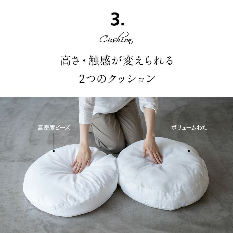 わたクッション(詰め物):ポリエステル綿(M:約0.5kg、L:約0.7kg)
