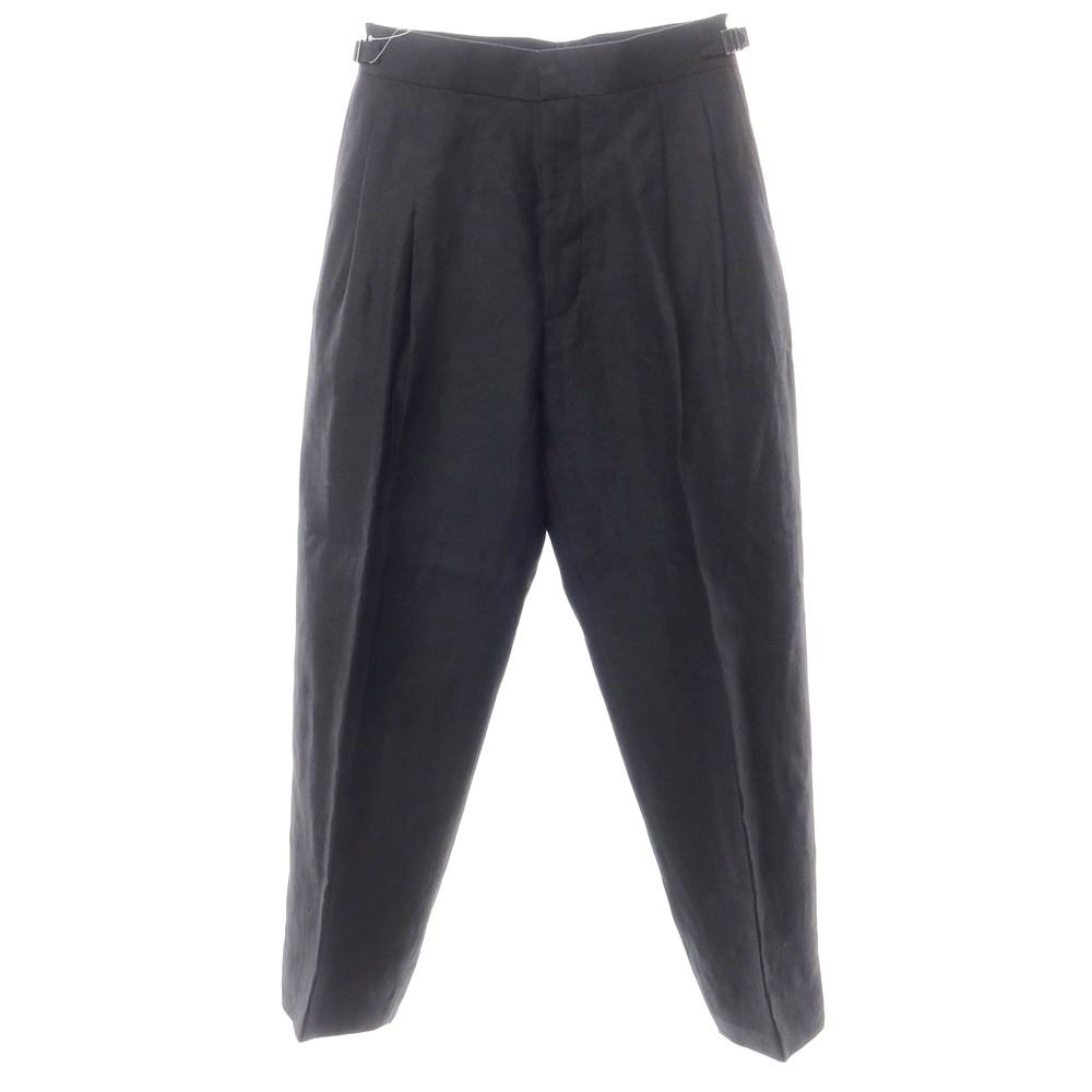 ヒューベント HUM VENT 春夏 ツイルリネン ワイド スラックスパンツ ネイビーxブラック サイズ2 メンズ
