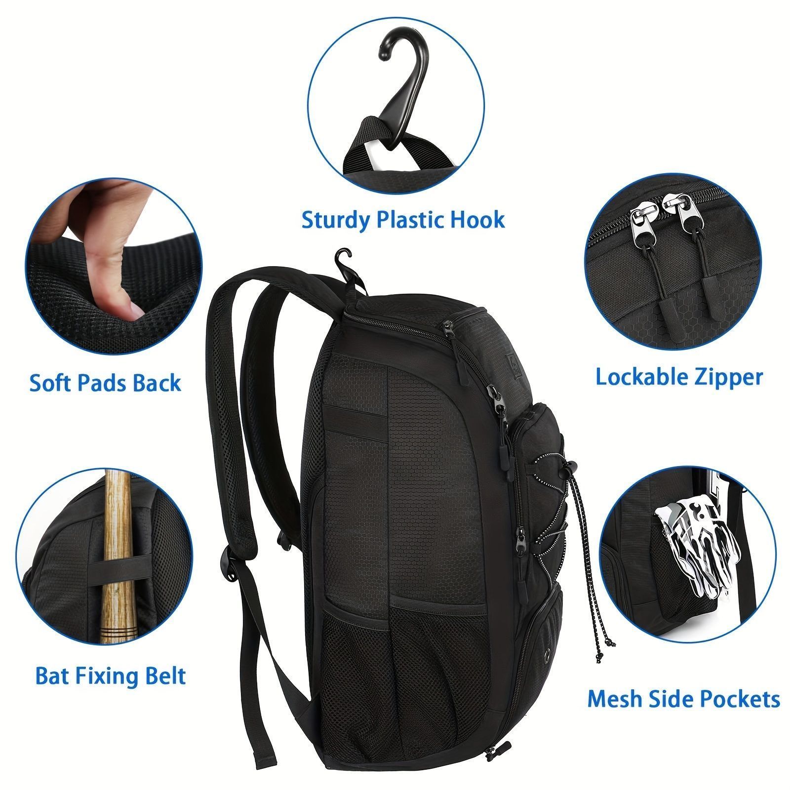 大容量設計で、スパイク、バッド、グローブなどの野球用品をすっきりと収納できるため、練習や試合に最適です。
