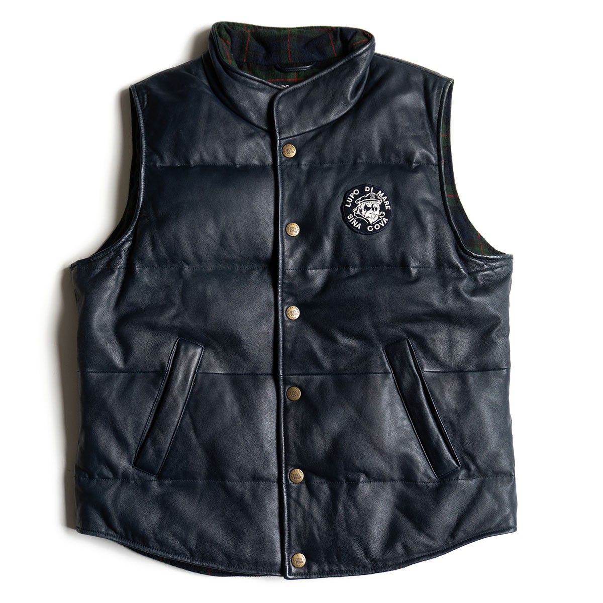 SINA COVA シープスキン レザー ダウン ベスト LLシナコバ ワッペン ネイビー 羊革