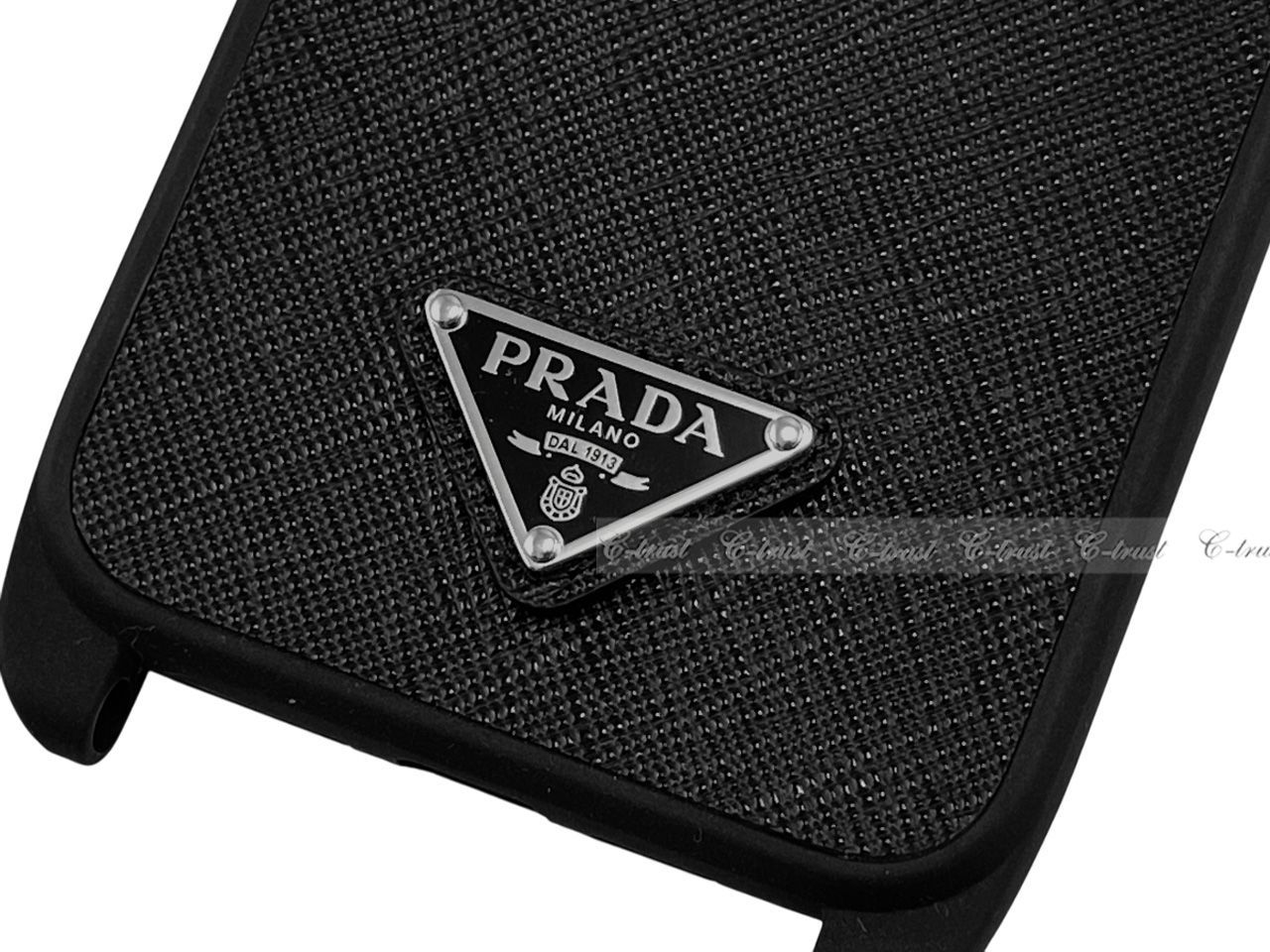 PRADA プラダ iPhone 14 Pro アイフォン ケース スマホ サフィアーノ トライアングル ストラップ ロゴ ブラック L 765