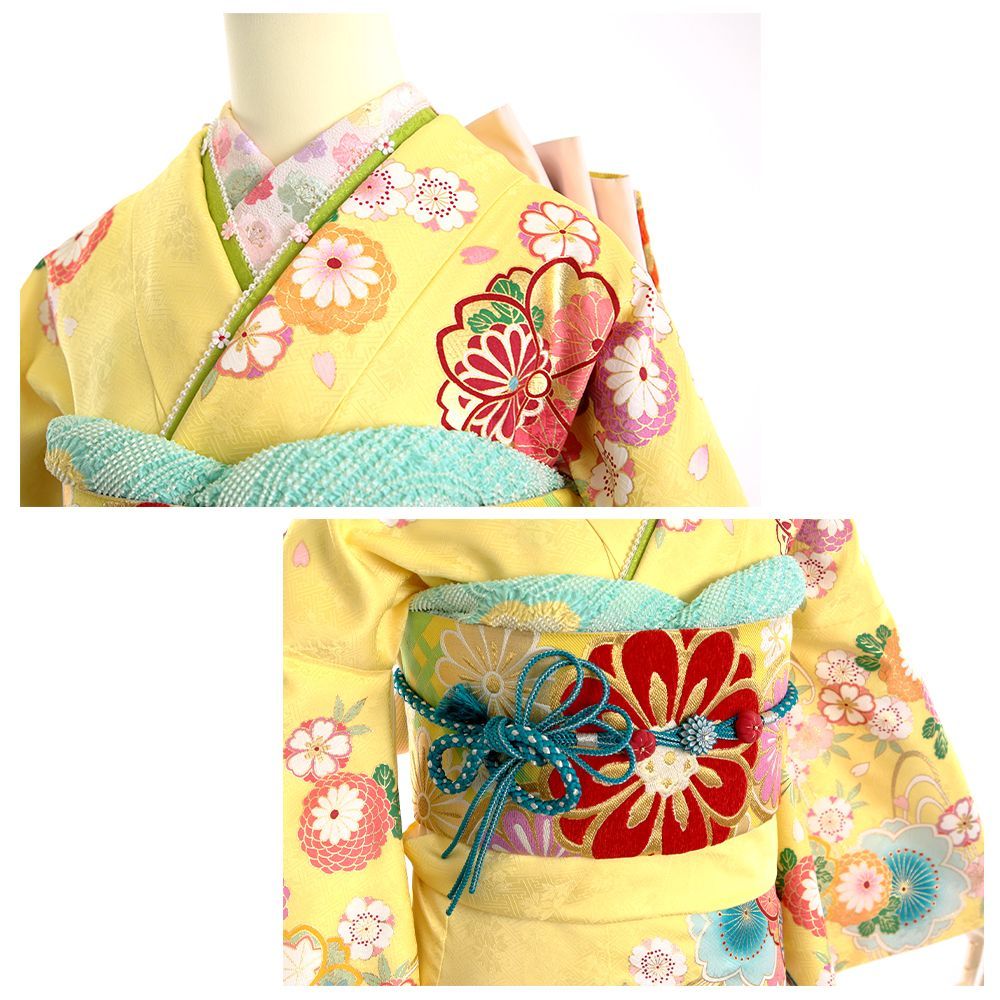 振袖 振袖フルセット 振袖セット 黄色 桜 鞠 6点セット レディース Mサイズ WA-FN-46