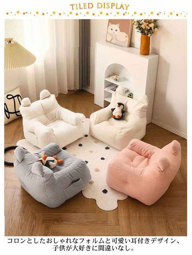 ビーズソファー 座椅子 子供ソファ キッズソファ 一人掛け ビーズクッション 椅子 耳付き ふわふわ 子供用 ミニソファ 背