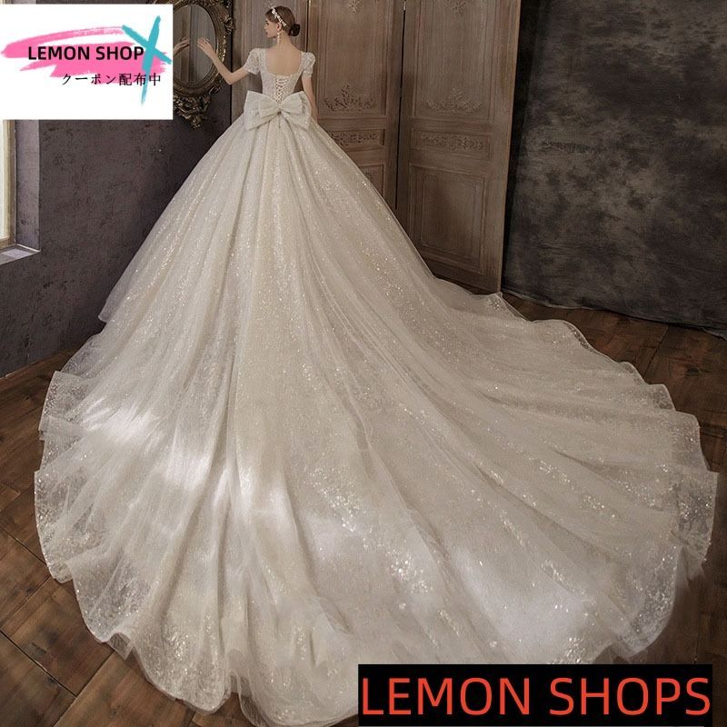 ♥ 2025 ウエディングドレス 袖付き 二次会 ウェディングドレス 結婚式 プリンセス 花嫁 ドレス 披露宴 ロングドレス ブライダル パフスリーブ フロアレングステール スーパーフェアリー 裾長め LEMON