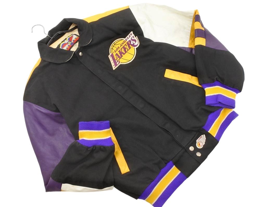 Jeff Hamilton ジェフ ハミルトン ヴィンテージ NBA ロサンゼルス レイカーズ スタジャン ジャケット sizeS 黒x紫x黄 メンズ