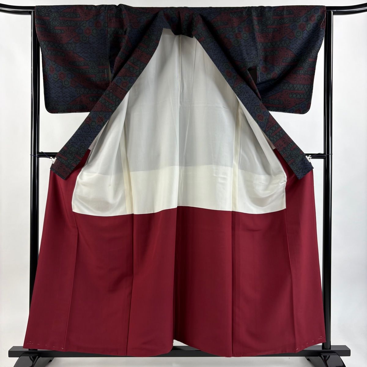 紬 身丈158 cm 裄丈64 M 袷 亀甲 菱 紺色 正絹 秀品