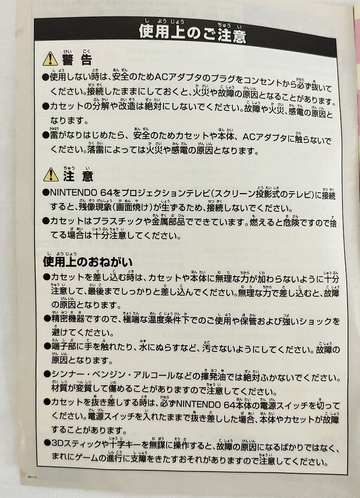 ニンテンドー64本体で動作確認済み。すぐに遊べる状態のため、レトロゲームファンも安心してお買い求めいただけます。