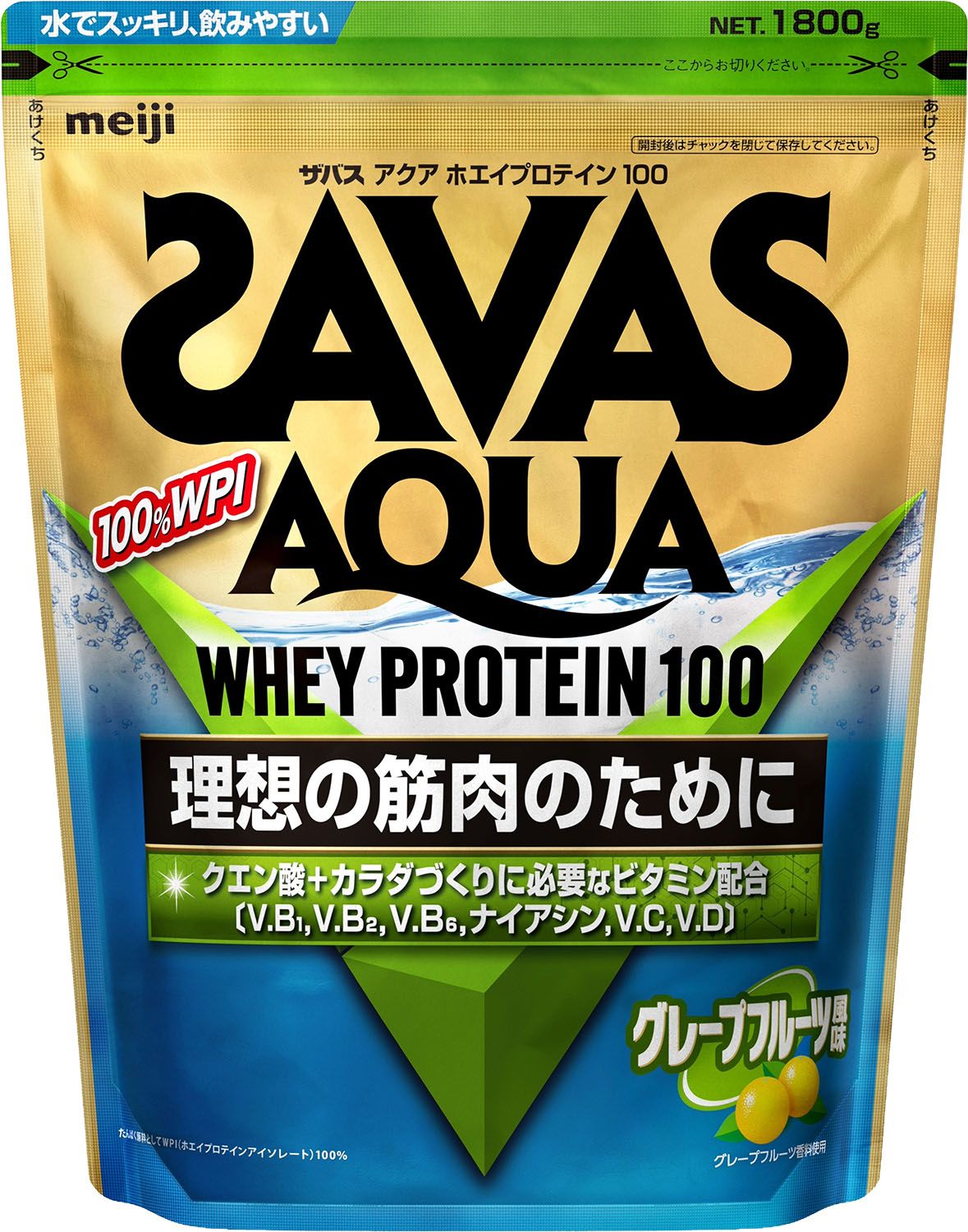 ザバス SAVAS ザバス アクア ホエイプロテイン100 グレープフルーツ風味 1800g トレーニング ジム ぷろていん クエン酸 ビタミン 2632551