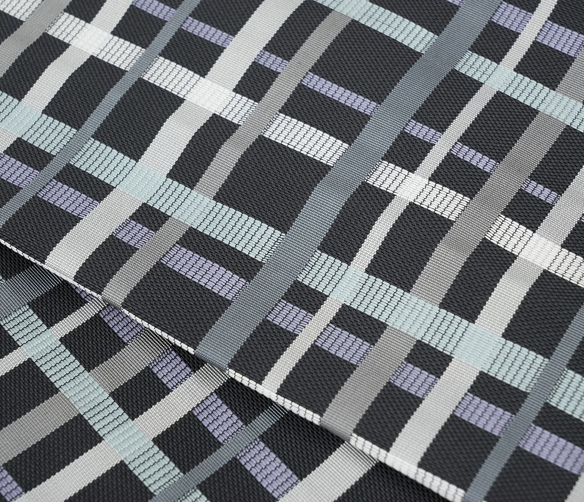 黒地にグレー・水色・紫の全通格子柄。