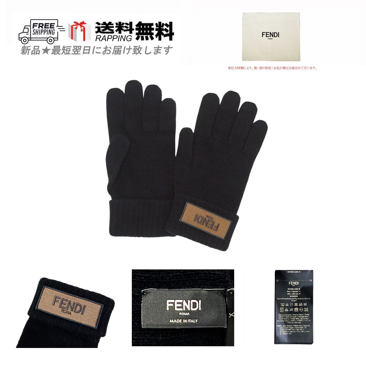 FENDI フェンディ グローブ 手袋 ニット 羊毛 メンズ ロゴ イタリア製 ブラック L 741-M