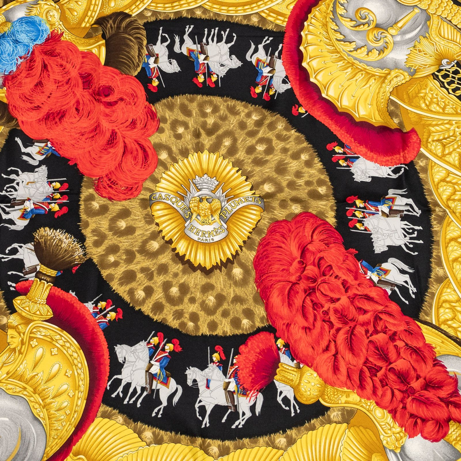HERMES エルメススカーフ黒 黄色 赤 ツイルシルクA