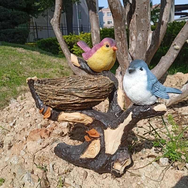 バードフィーダー 小鳥 野鳥 用 給餌器 餌箱 餌台えさ置き 置物 鳥の巣と小鳥達 餌入れ 鳥 ガーデンオブジェ インテリア ガーデニング ペット食器 野鳥観察 バード用品 インテリア雑貨 樹脂