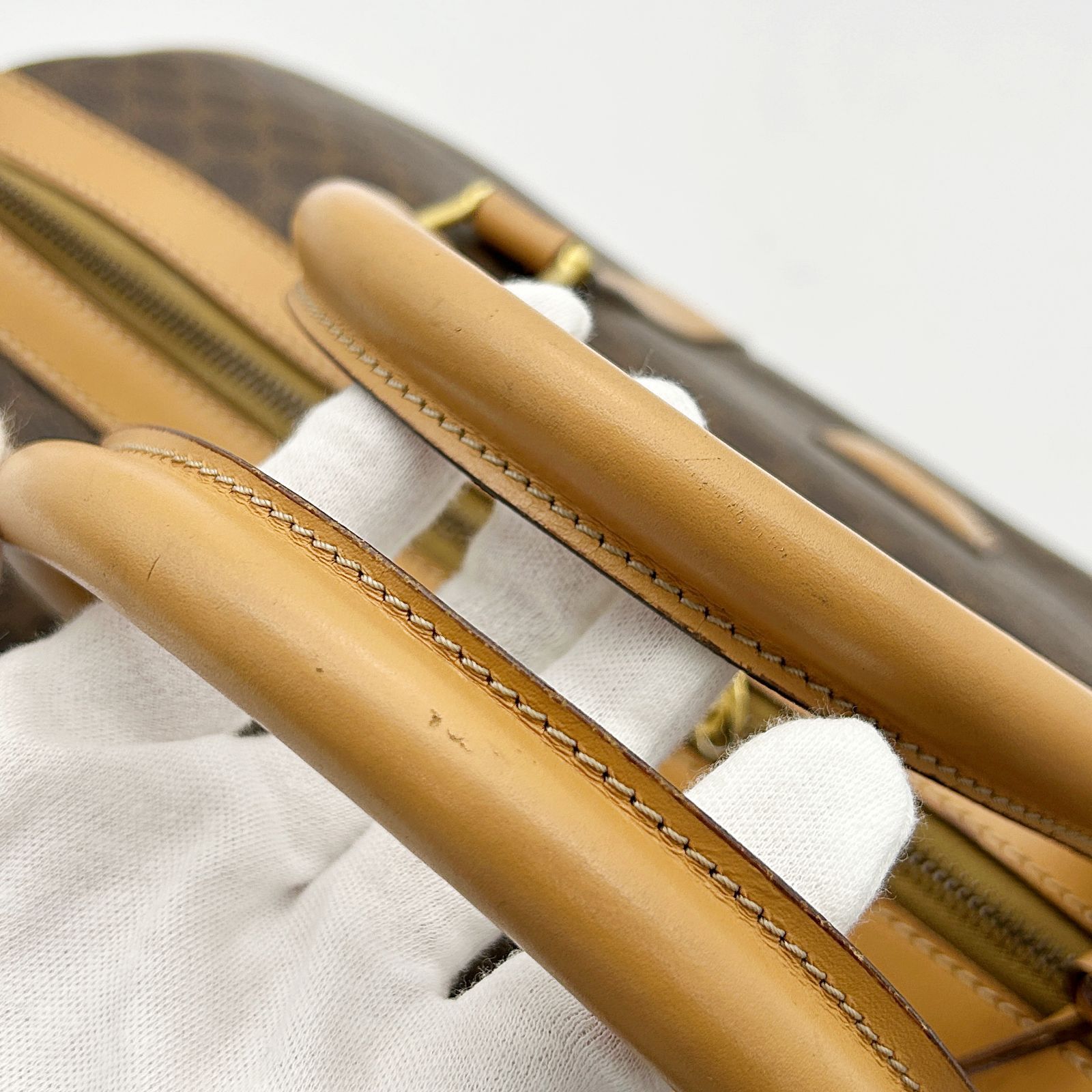 角やレザー部分・ハンドルに擦れや汚れ、内側は目立つ汚れはなく状態良好です。