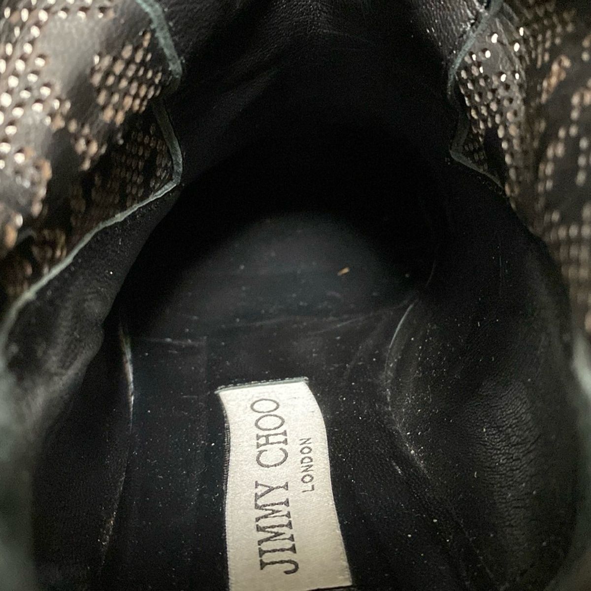 JIMMY CHOO ジミーチュウ ショートブーツ 38 レディース - 黒 豹柄 パンチング レザー