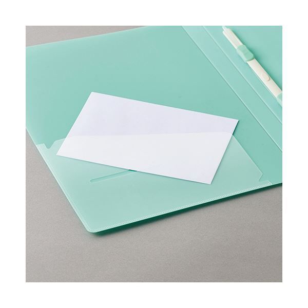 ●書類や名刺の一時保管に便利な透明ポケット付。