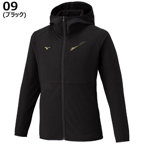ミズノプロ mizuno pro 野球 ソフトボール ウエア テックシールドフーディ 長袖 ジャケット 裾バインダー ストレッチ 防風性 脇ポケット付き 12JECW77 09カラー ブラック 黒 限定