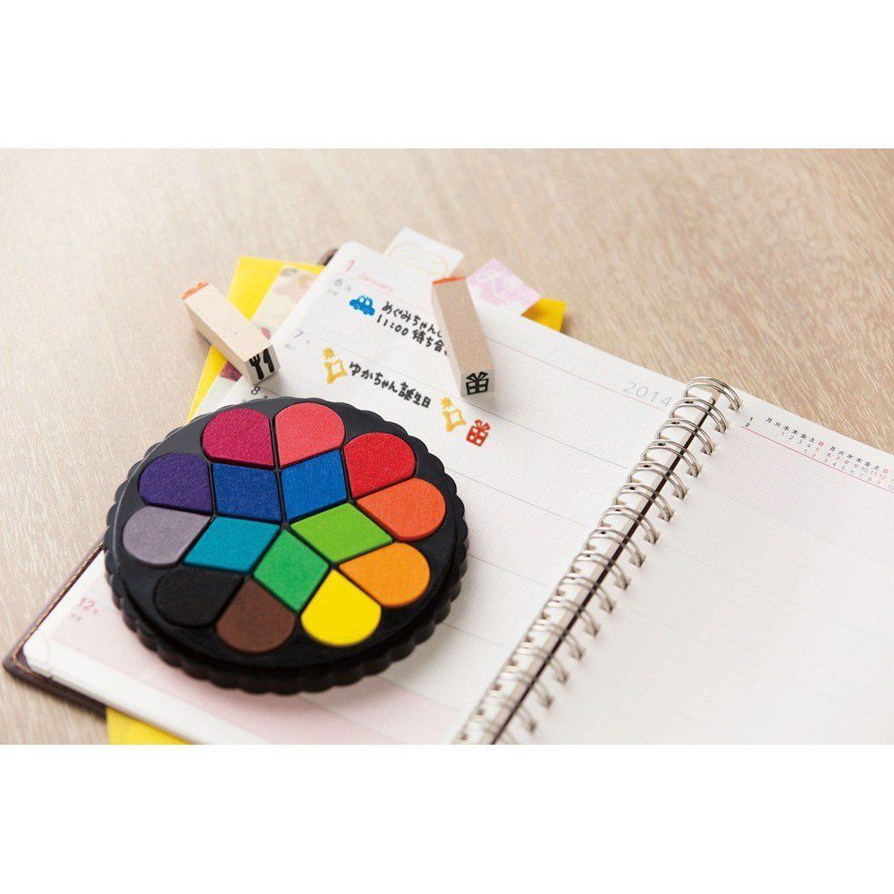 シヤチハタの「イロドリパッド」は、彩り鮮やかな基本色をひとつにまとめているから、1つでたくさんの色を揃えることができてお得です。