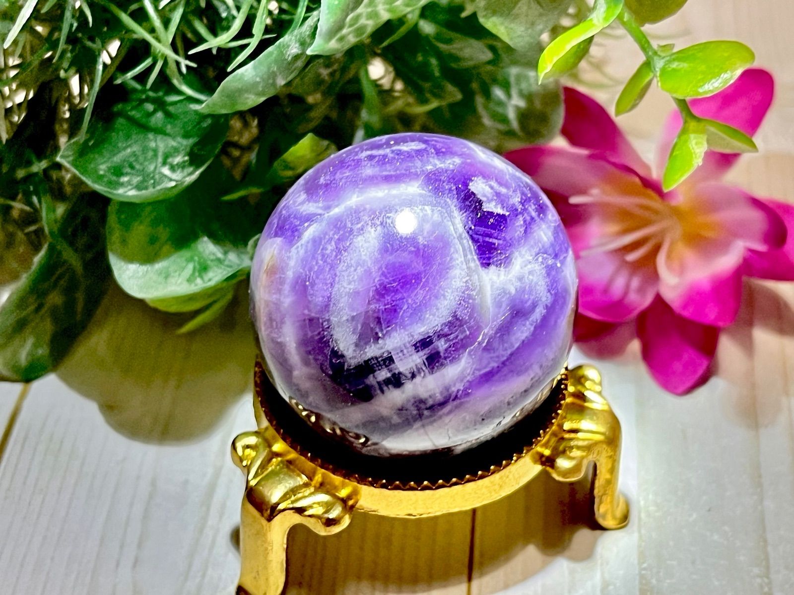 グラフィカルな模様が特徴的なピクチャーアメジスト スフィアです❁⃘*.゜