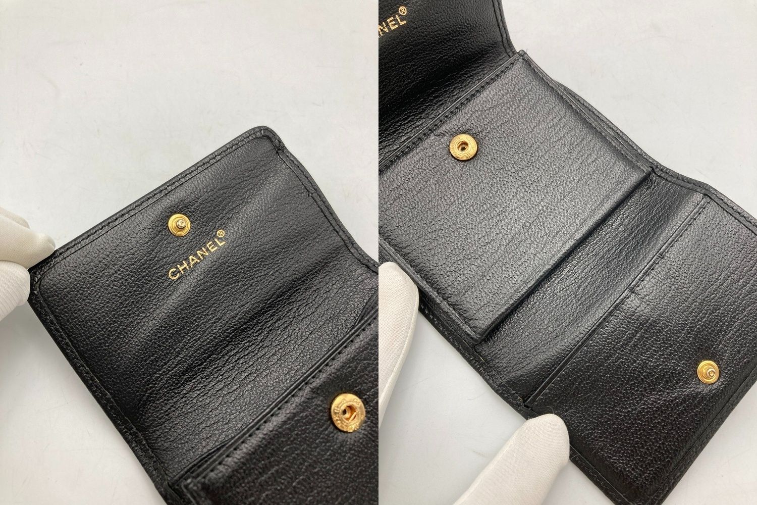 CHANEL シャネル レザー 3つ折り財布 ミニウォレット ブラック レディース D 4
