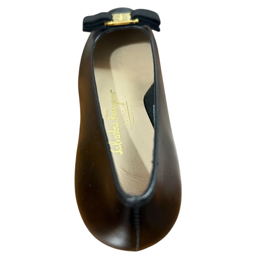 Salvatore Ferragamo サルヴァトーレフェラガモ カーフレザー ヴァラリボン ローヒール パンプス サイズ7 B 約24 cm ブラック レディース 古着