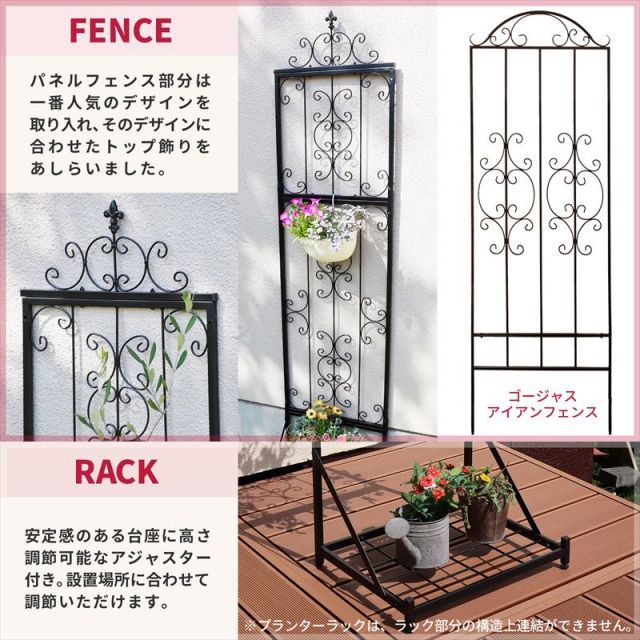 ガーデンガーデン IBフェンス アイアン ローズパネル付きプランターラックセット Lサイズ 幅45×奥行35×高さ190 cm トレリス IBF-RSPNL-