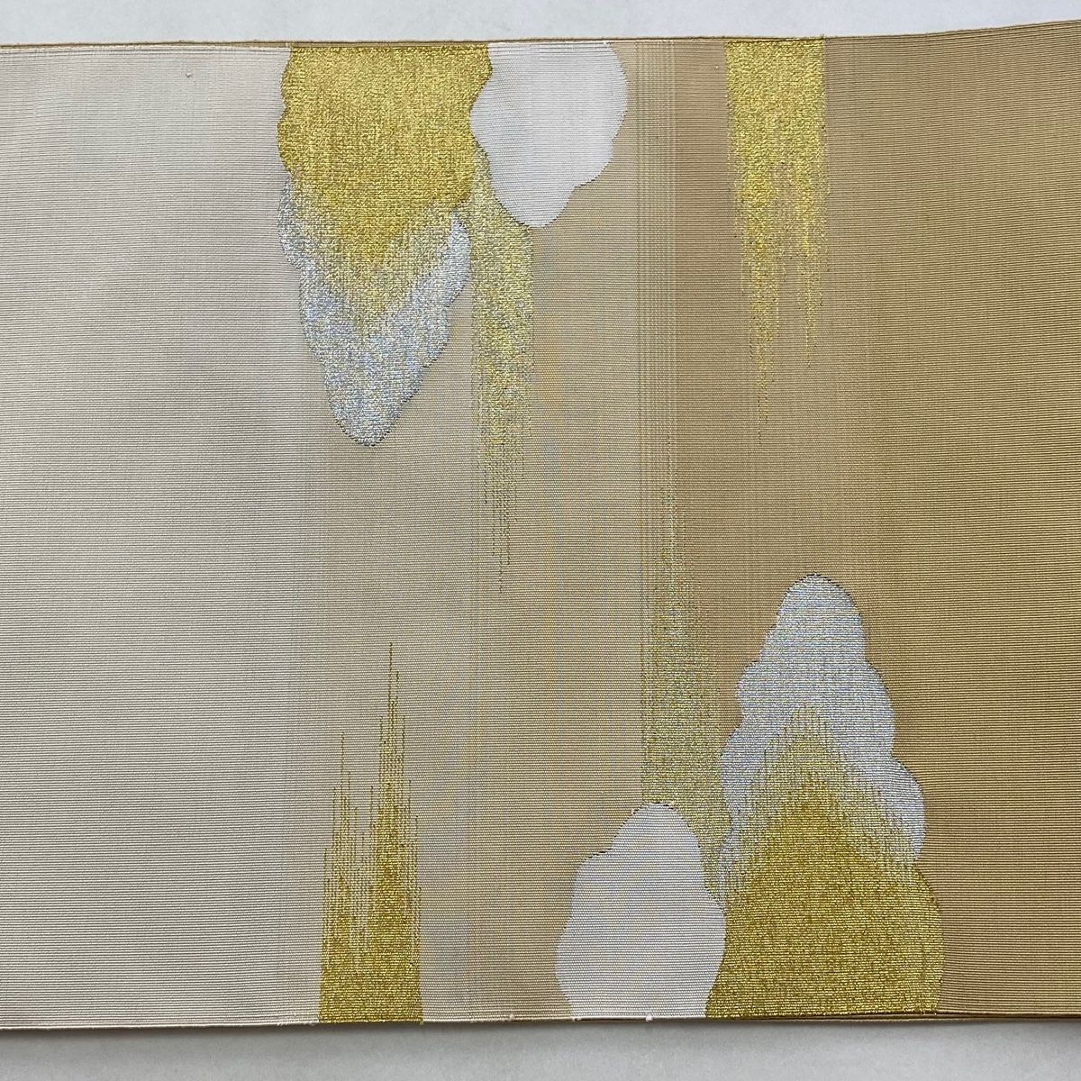 名古屋帯 秀品 八寸名古屋帯 雲文 金銀糸 綴れ ベージュ 正絹
