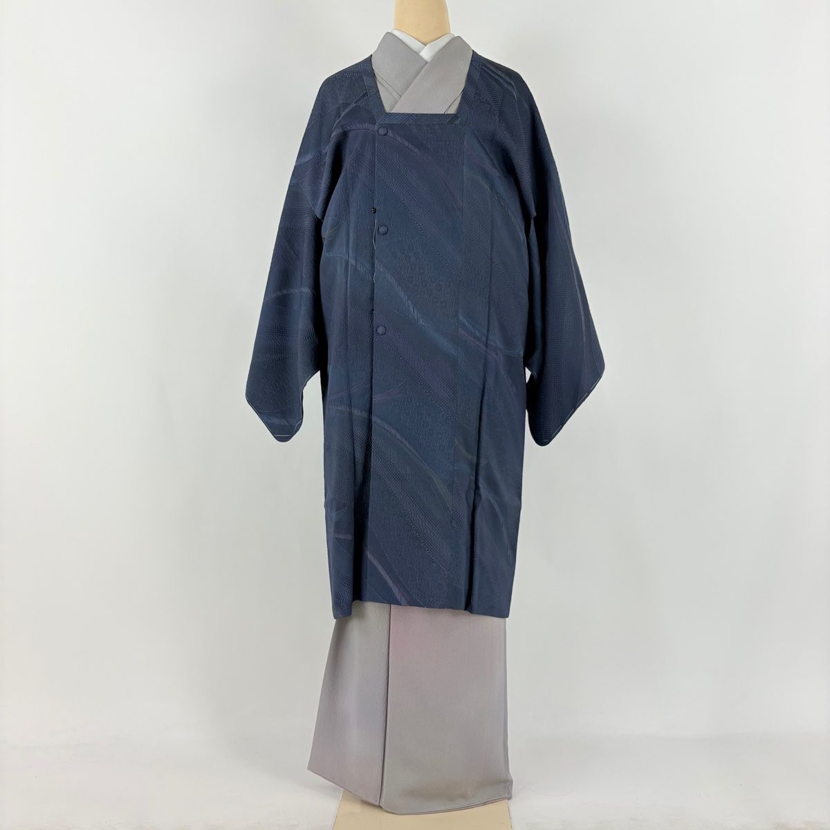 道行 身丈104.5 cm 裄丈64 M 和装コート 角衿 地紋 ぼかし 青紫 正絹
