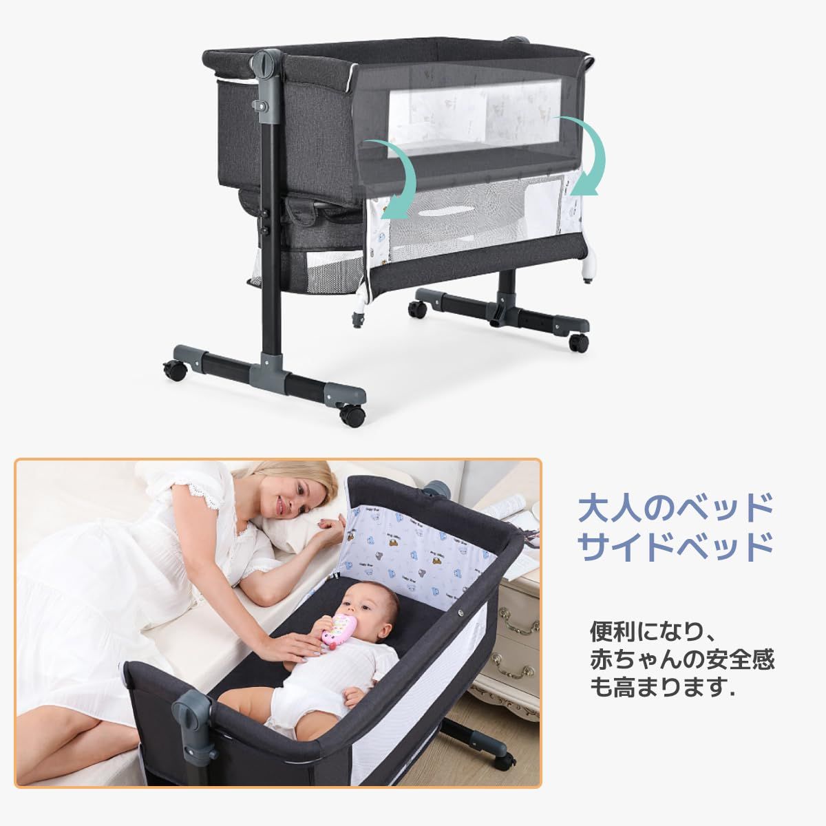 baby bed 添い寝 高さ調整 ミニ 蚊帳 新生児 出産祝い バウンサー 通気性 折畳み キャスター付き ベビーベッド 92 68 80 cm Bornran グレー