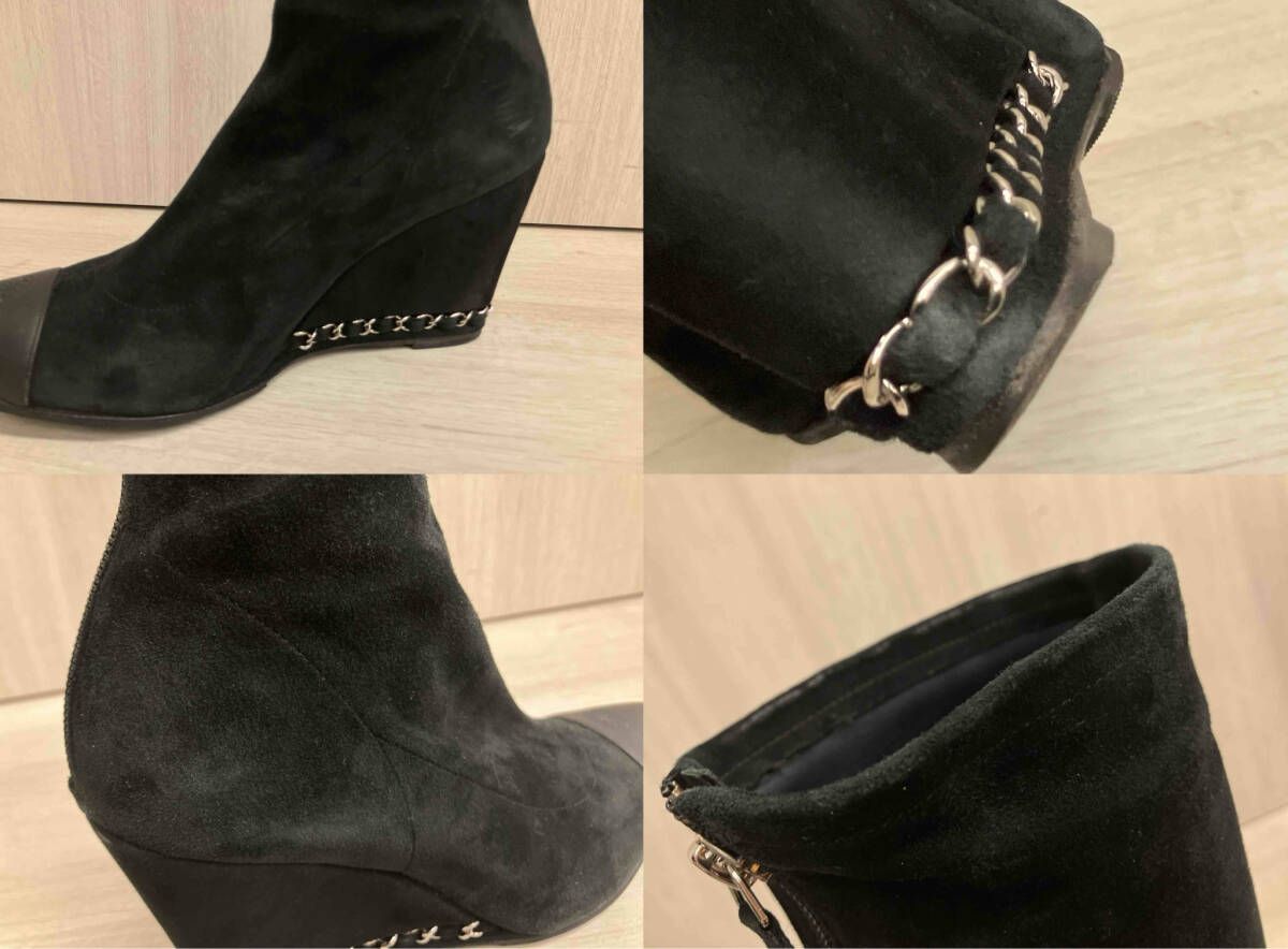 CHANEL シャネル ロングブーツ スエード ウェッジヒール 黒 ブラック レディース サイズ36 1 2