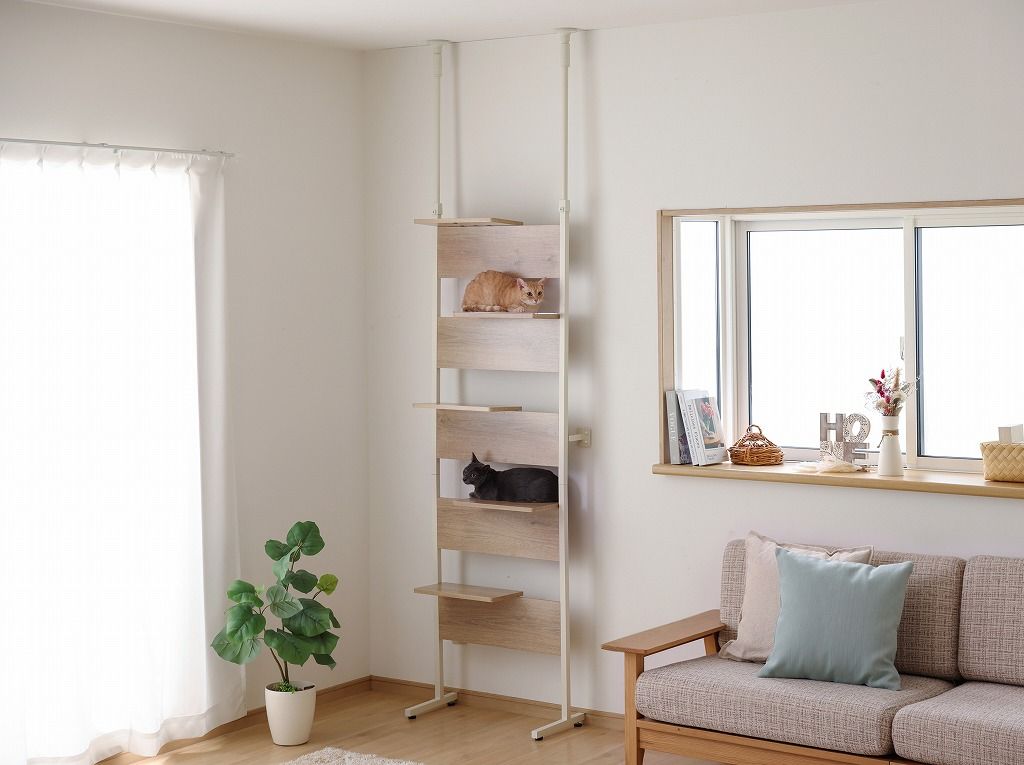 アイリスオーヤマ キャットステップ 5段 幅約68.1×奥行約30.4×高さ約208.5〜278.4 cm 覗ける透明板 キャットタワー キャットウォーク 省スペース ライトナチュラル CATS-68 IRIS OHYAMA